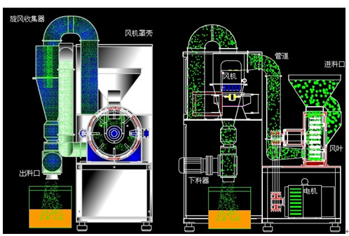 該機(jī)組適用于制藥、食品、化工等行業(yè)。具有風(fēng)冷、無(wú)篩網(wǎng)等多種性能,它不受物料粘度、軟硬度及纖維等限制,對(duì)任何物料能起到較好的粉碎效果。特別適用于粉碎帶纖維的中藥材、帶一定油性的物料。